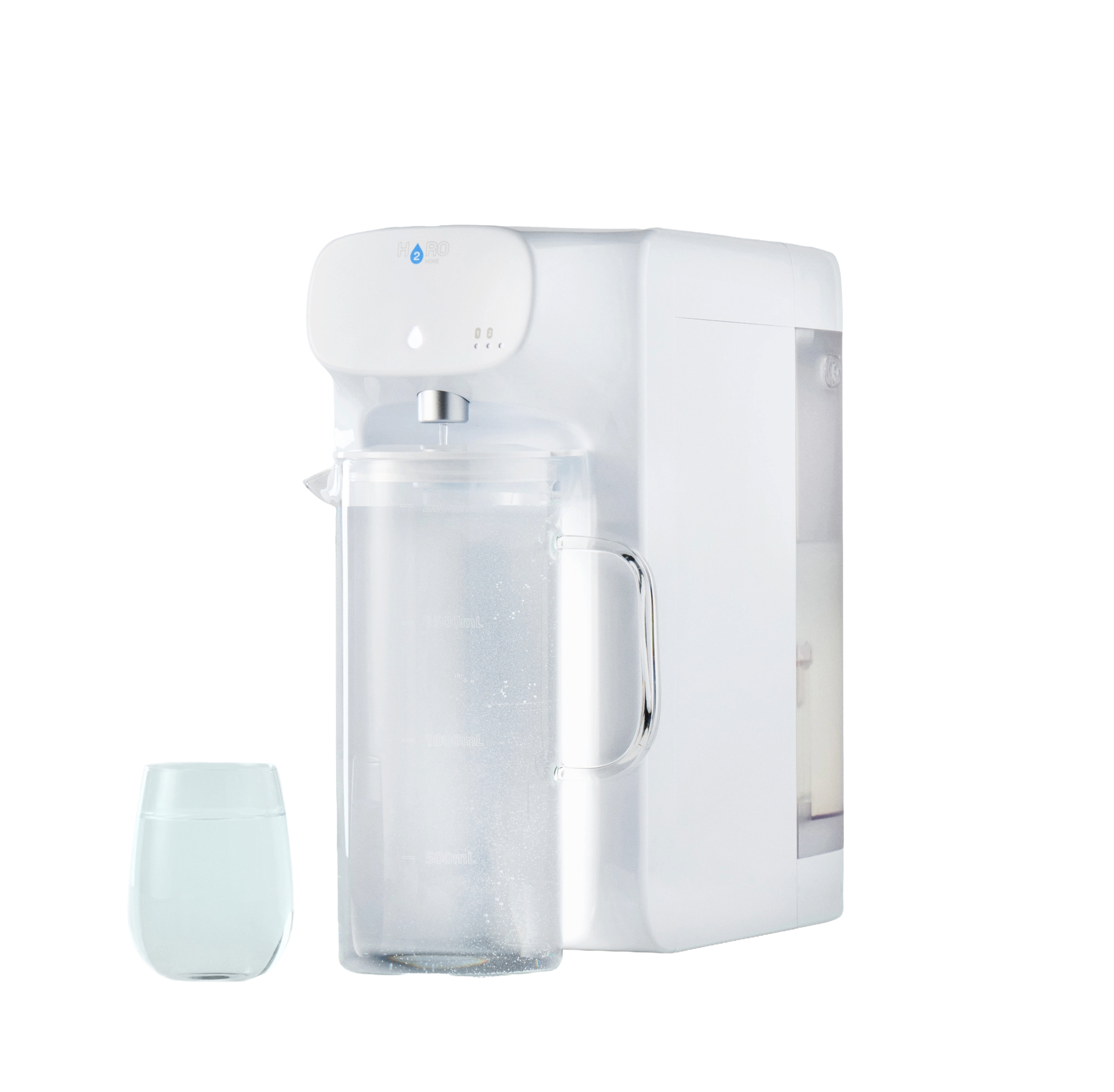 H2RO Home 5 Liter tank har to ulike filter som utfører en avansert 5-stegs filtreringsprosess og gir deg helt rent vann i hjemmet på kun et enkelt tastetrykk. Alle punkter etter filtrering er av metall/glass. Metall på toppen hvor vannet kommer ut, og karaffelen er food grade glass.